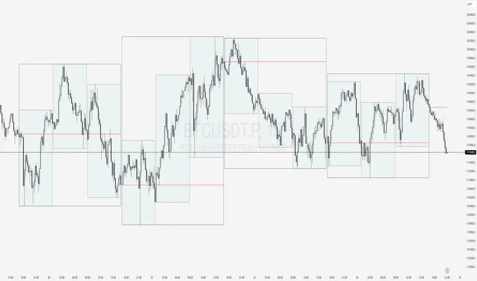 This indicator visually segments the trading week on your chart, drawing each day from 17:00 to 17:00 New York time (corresponding to the typical forex daily rollover). For enhanced session structure, every day is further divided into three major trading sessions:Asian Session
