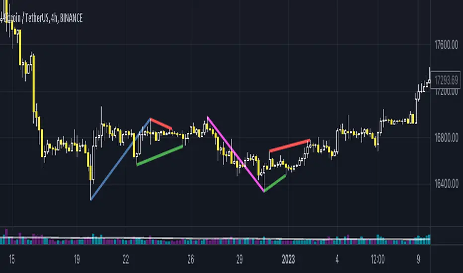This script identifies chart patterns: wedges, flags, triangles on the chart