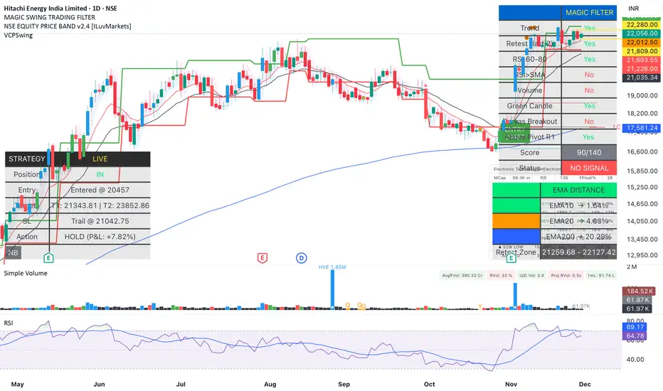 This indicator is a complete Swing Trading System designed to identify high-probability trend continuation setups. It combines classic trend-following principles with a unique "3-Bar Retest" logic and provides a real-time Strategy Dashboard to help you manage positions without needing a separate strategy script.