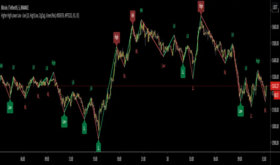 This is Higher High Lower Low - Live script. HHLL Live means Labels are calculated and placed dynamically. if you don't know what the Higher High - Lower Low is then you should search it on the net ;)