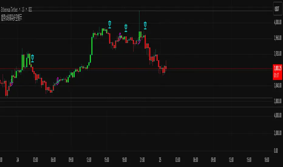 This indicator is an intuitive overlay trend-following tool. It intelligently colors the K-lines and directly marks "Long" (多) and "Short" (空) signals on the chart, providing traders with a clear visual representation of the trend direction and potential trading points.