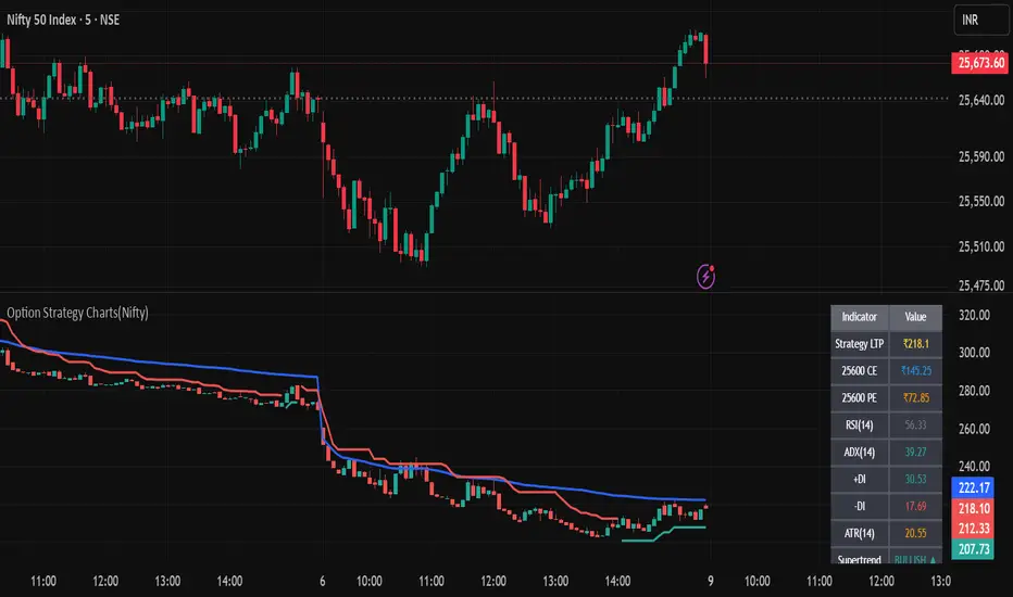 **Option Strategy Charts** is a comprehensive technical analysis tool designed specifically for traders working with NIFTY index options on NSE. This indicator transforms complex multi-leg option strategies into clean, chartable price series with built-in technical analysis tools.