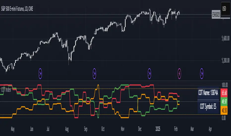 The script pulls COT report data from the TradingView COT Library TradingView/LibraryCOT/3).
