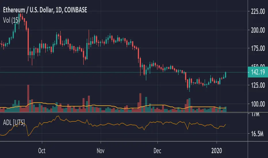 It is determined by the changes in price and volume. The volume acts as a weighting coefficient at the change of price — the higher the coefficient (the volume) is the greater the contribution of the price change (for this period of time) will be in the value of the indicator. The indicator is also known as Accumulation / Distribution Index.