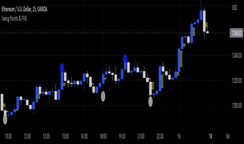 The indicator also marks Fair Value Gaps which is a very important concept in price action trading. FVGs are formed when there is ineffeciency,or imbalance, in the market.