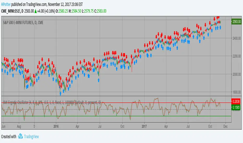 SMI, is plotted to help trigger trading signals. Adjustable guides are also given to fine