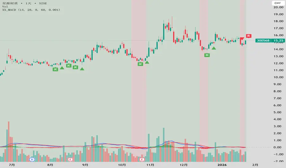 Departing from the standard MACD parameters, this system uses customizable fast (default:14), slow (default:28), and signal (default:8) periods to adapt to different market volatility and asset types (stocks, futures, cryptos). The core DIF, DEA, and histogram are retained while optimized for better sensitivity to medium-term trends.