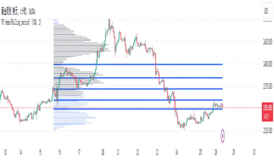 In the native VP (Volume Profile), the commonly referenced parameters are POC (Point of Control), VAH (Value Area High), and VAL (Value Area Low). However, since VAH and VAL are calculated by extending outward from the POC, their values heavily depend on the shape of the VP and the parameter settings of the value area ratio. This means their significance in identifying support and resistance in the market is limited. Based on VP, my algorithm is designed with two additional methods to identify low-volume points within a rolling time period, using them as reference points for support and resistance.