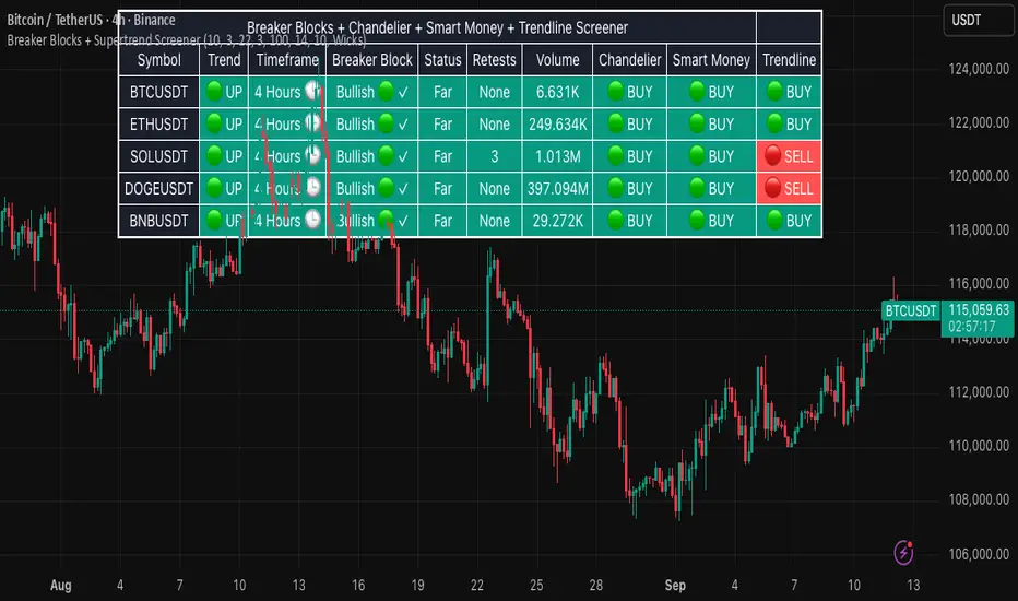 This screener provides a comprehensive view of market conditions across multiple strategies, helping identify high-probability trading opportunities when signals align.