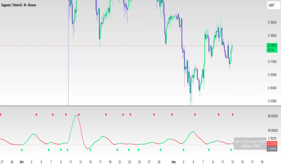 AMP measures the rate of change of price pressure and automatically adjusts its sensitivity based on market volatility.