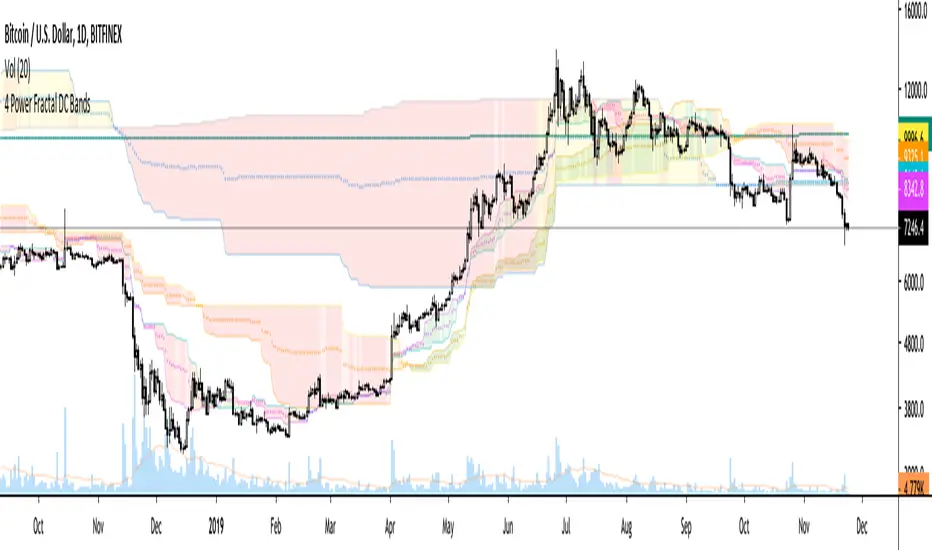 Each band represents a relevant fractal size, and depending whether they are turned upwards or downwards, and aligned or not, it is possible to better orient one's expectations towards more likely price direction. Discreet levels or areas are also more likely points of reversal.