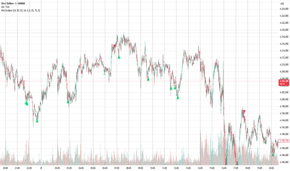 This indicator is designed for short-term price rotation detection on XAUUSD, especially on the 1-minute timeframe.