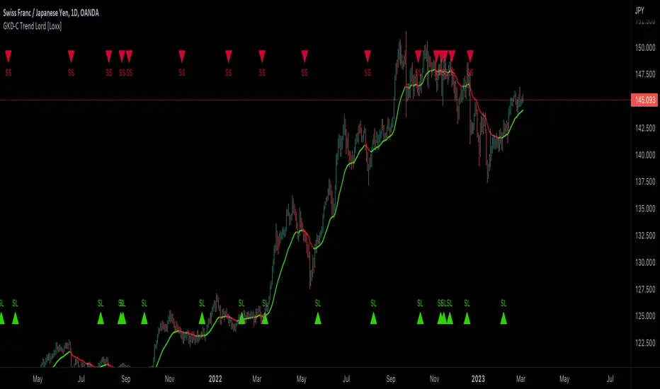 Trend Lord is a moving average crossing indicator using a fast and slow period for the two moving averages. The slow period is the period input in the settings, the fast period is the squareroot of the slow period.