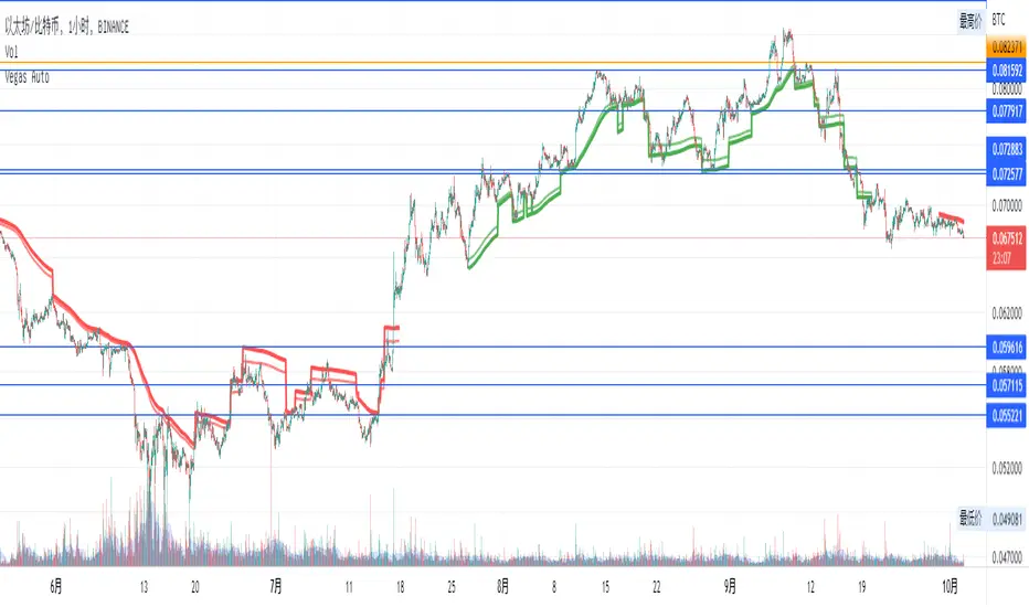 The Vegas tunnels when the buy/sell signals are valid are shown as green/red lines. The time frames considered are 30m, 1H, 2H, 4H, 6H, 12H, and 1D.