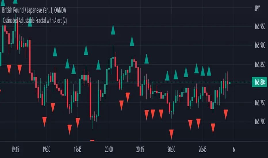 This indicator (Ostinated Adjustable Fractal with Alert) is like the traditional William Fractals. However, it created to overcome two disadvantages of the William Fractals: