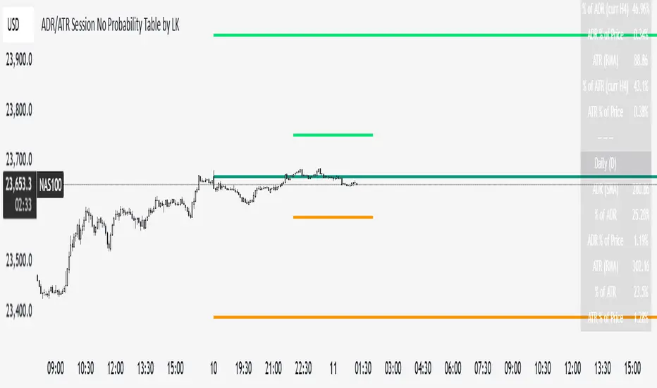 • Use % of ADR (curr H4 / Daily) to judge exhaustion or room left in the day/session.