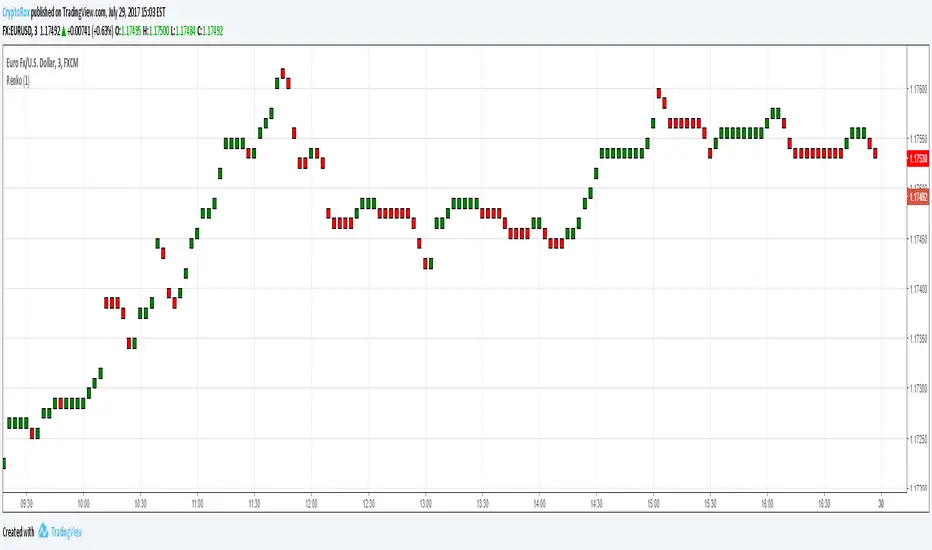 This is a script to place Renko candles on your chart alongside another candle type or more importantly, using the variables from this script, you can build a strategy using Renko candles that will depict true/proper entries and exits in a strategy when using the backtest feature.