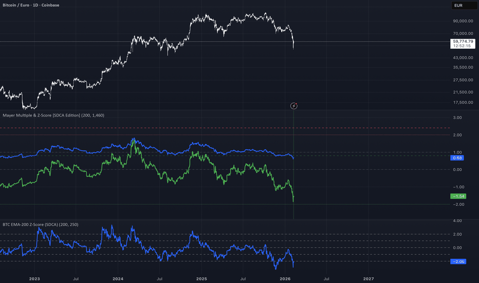 BTC EMA-200 Z-Score (SDCA)This indicator measures how far Bitcoin’s price deviates from its 120-day simple moving average (SMA) using a Z-score.
