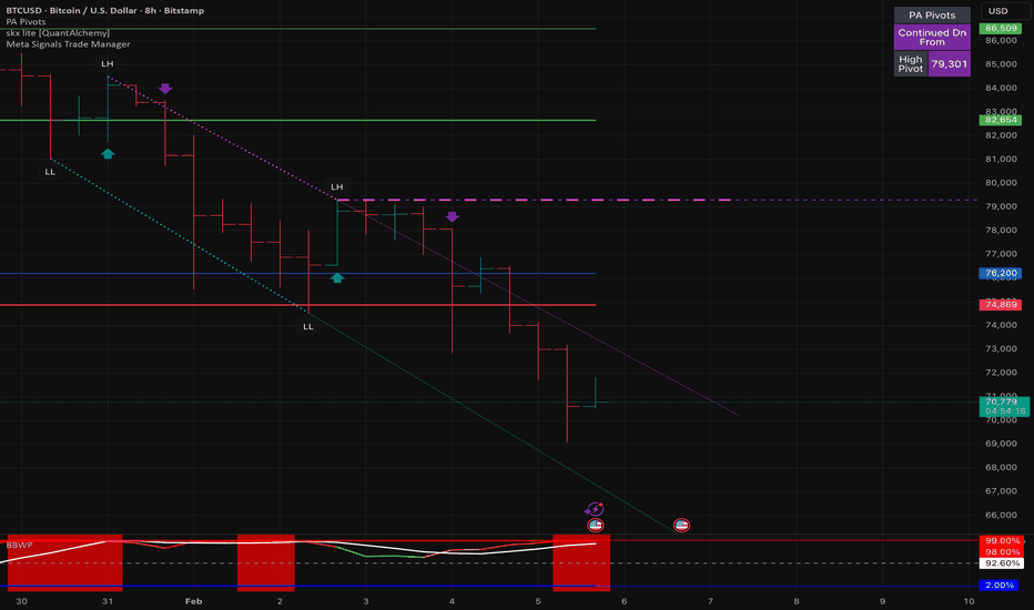 The indicator uses a 200-candle Donchian channel to detect major regime shifts, filtering the market into bullish or bearish environments. After a confirmed shift, SMART TRADER automatically identifies order blocks and marks Change of Character (CHOCH) events to highlight potential continuation entries with structural confirmation.