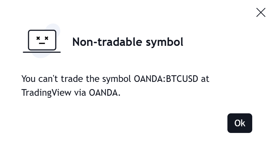 La liste des symboles dans TradingView peut contenir des symboles non tradables qui doivent être ignorés. Lorsque vous essayez de trader des symboles non tradables, vous verrez apparaître le message suivant :