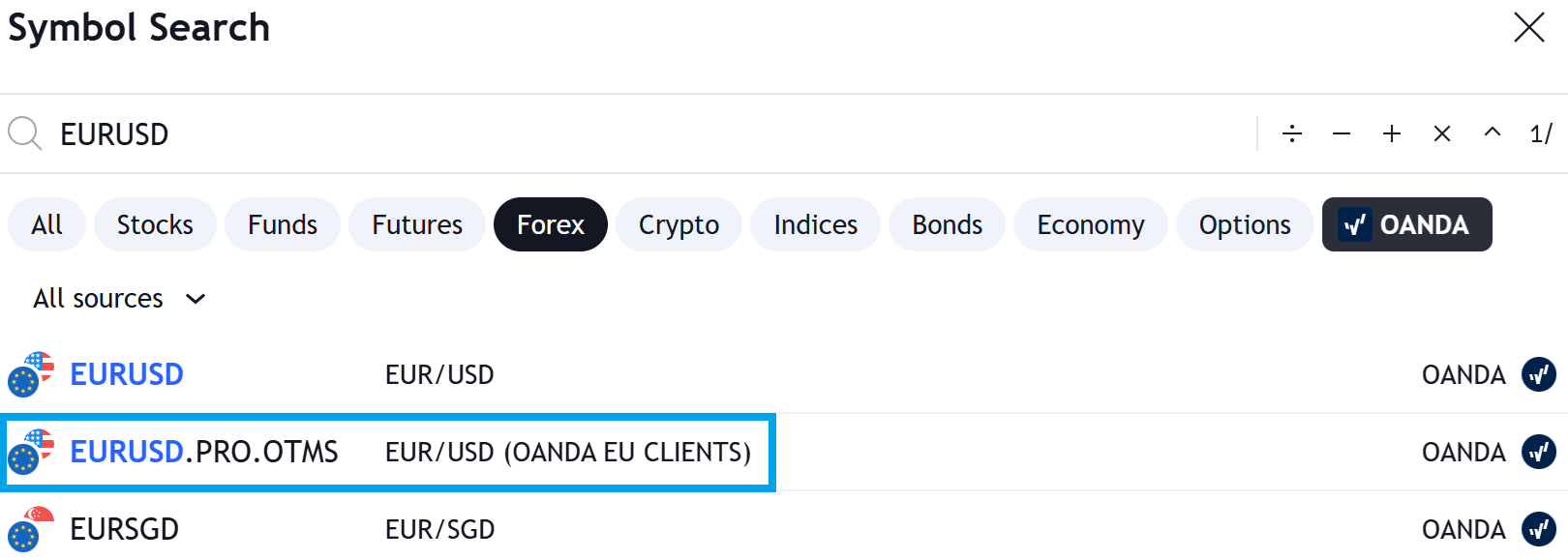 - Les clients d'OANDA Global Markets ne peuvent trader que sur les symboles ayant le suffixe .ONE.
