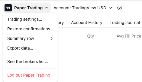 - Cliquez sur « Se déconnecter du paper trading » ou «Voir la liste des courtiers».