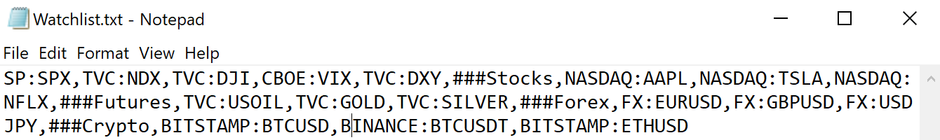 ! Note : Le fichier d'entrée doit être au format .txt et les symboles doivent avoir le préfixe d'échange et être séparés par des virgules.