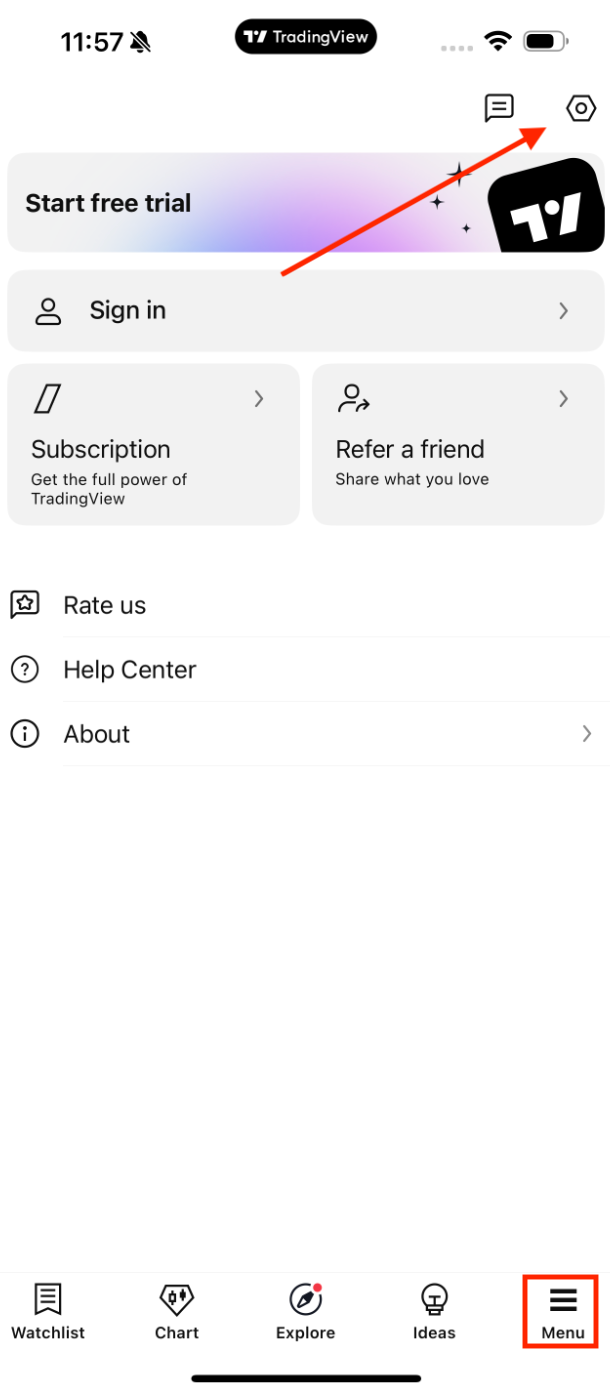 - Appuyez sur le bouton en forme de roue dentée dans le coin supérieur droit ;