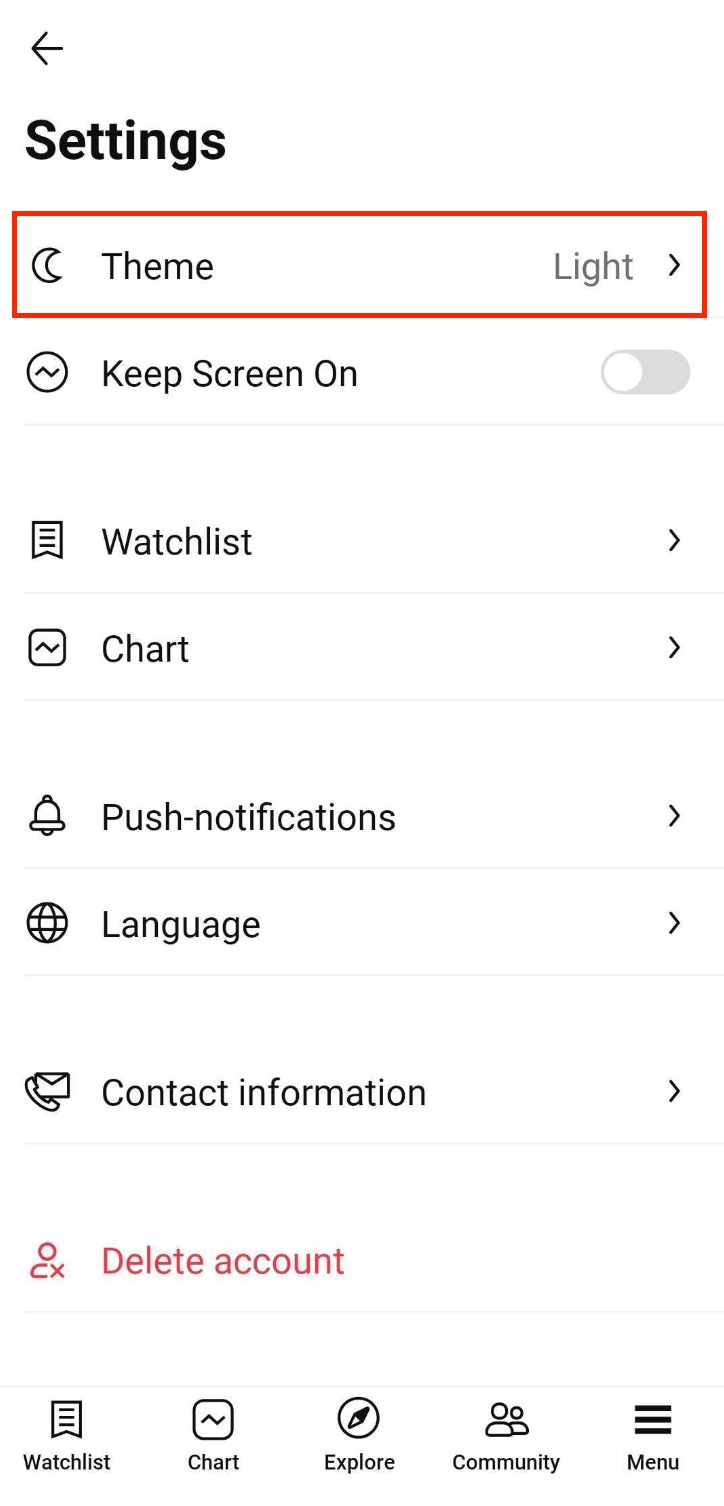 - Ouvrez l'écran Menu à partir de la barre d'outils inférieure ;
