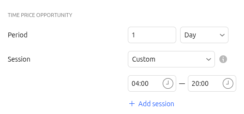 - Cliquez sur Ajouter une session pour inclure des intervalles supplémentaires. Vous pouvez ajouter jusqu'à cinq sessions personnalisées au total.