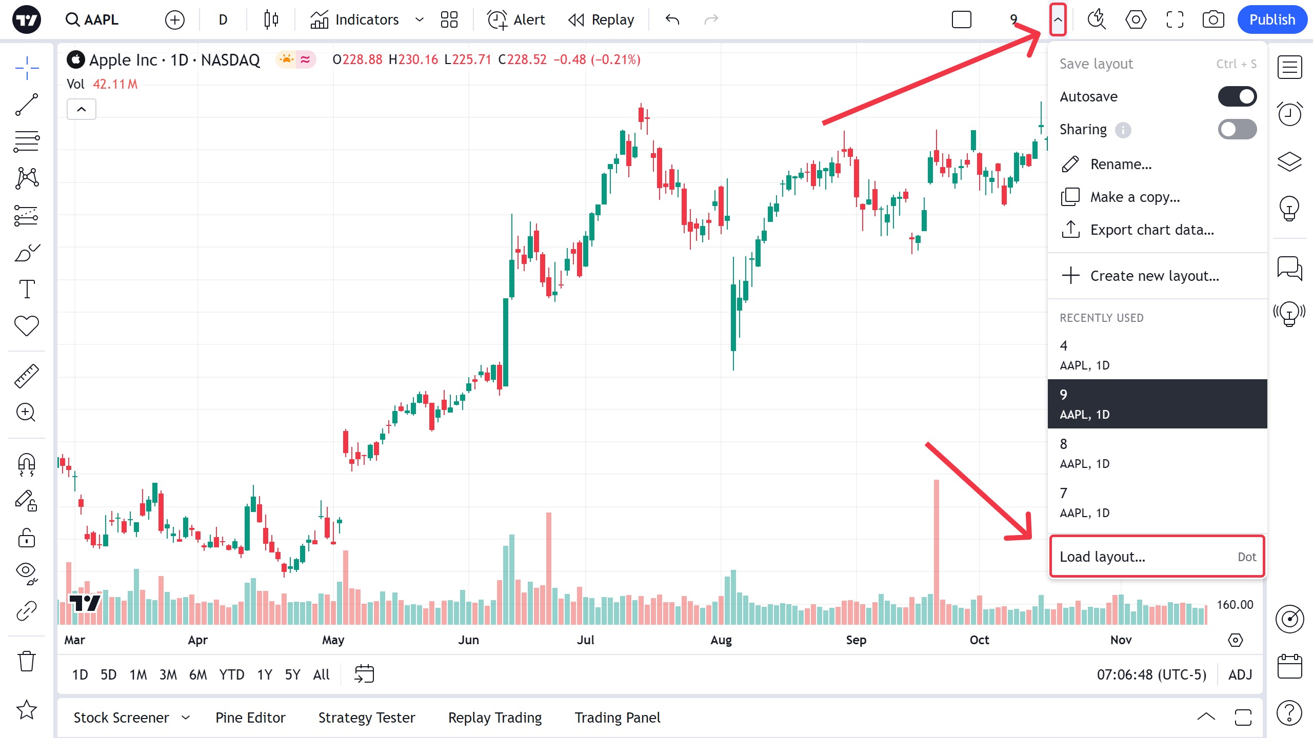 Pour supprimer une mise en page dont vous n'avez plus besoin, ouvrez la liste déroulante « Gérer les mises en page » dans le panneau supérieur et sélectionnez « Charger la mise en page... ».