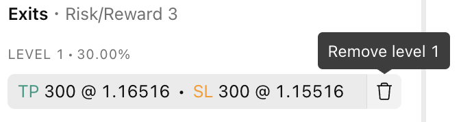 À côté de chaque niveau, vous verrez également le pourcentage de la quantité de l'ordre principal utilisé dans ce niveau de sortie spécifique. Lorsque ce niveau de sortie est exécuté, la position sera clôturée pour le pourcentage correspondant de sa quantité totale.