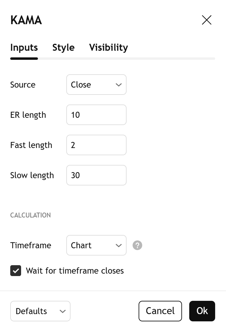 La KAMA utilise deux facteurs de lissage EMA distincts pour déterminer sa réponse de lissage. Un facteur correspond à la réponse la plus lente pour les mouvements de prix inefficaces, et l'autre correspond à la réponse la plus rapide pour les mouvements efficaces :